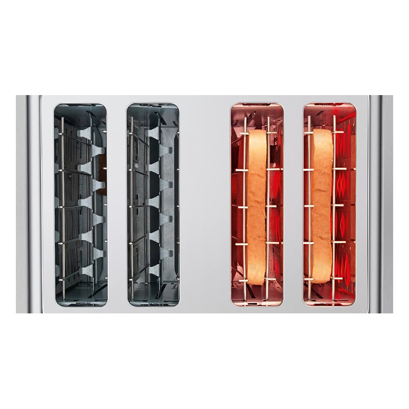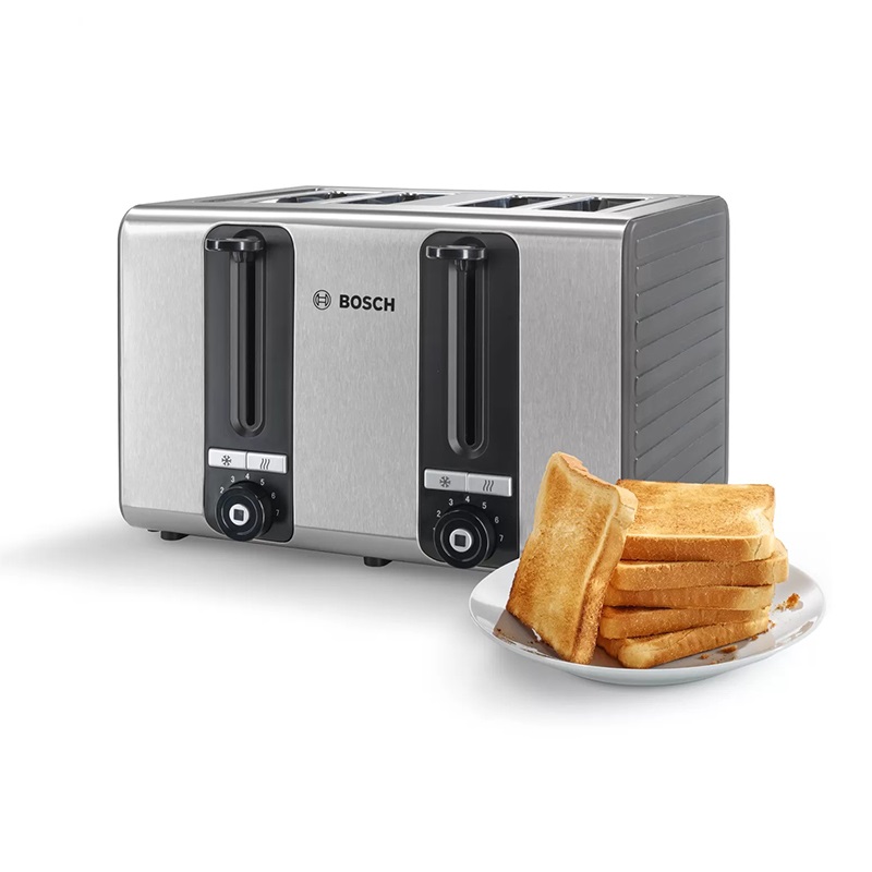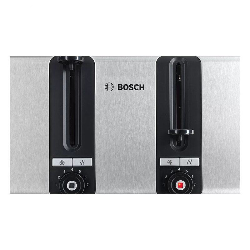 توستر بوش مدل BOSCH TAT7S45 قابلیت یخ زدایی، گرم کردن مجدد نان، تنظیم دما و تنظیمات کنترل میزان برشته شدن نان نیز دارد که ۷ حالته نیز میباشد. این دستگاه سیستم برشته کردن متمرکز برای برشته کردن