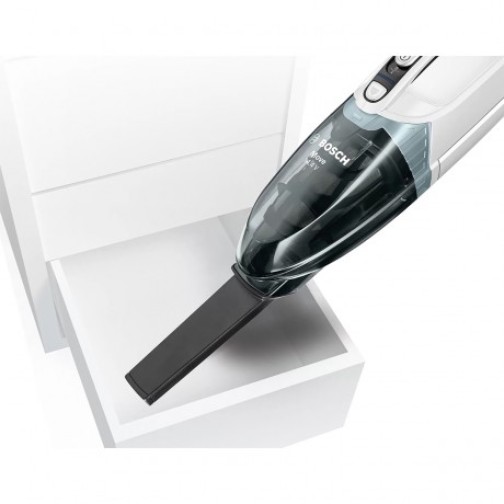 جارو شارژی بوش BOSCH مدل BHN14N وسیله ای با طراحی زیبا و بدون سیم بوده که کار با دستگاه را آسان می نماید. جارو شارژی های دستی بوش وسیله ای کاربردی برای تمیز نمودن منزل ، محیط کار و حتی داخل ماشین میباشند. طراحی بدون سیم این جارو شارژی موجب استفاده آسان میشود. باتری 14.4 ولتی دستگاه از نوع NI-MH بوده که در مدت 12 الی 16 ساعت به صورت کامل شارژ میشود و میتوان 12 دقیقه مستمر از جارو استفاده نمود. با روشن شدن چراغ نشانگر روی بدنه از زمان شارژ دستگاه مطلع میشوید. مخزن دستگاه ظرفیت مناسبی داشته و به راحتی و تنها با فشردن یک کلید از بدنه اصلی جداسازی میشود. فیلتر بهداشتی تعبیه شده درون مخزن نیز از خروج گرد و غبار به محیط جلوگیری می نماید. یک سری باریک برای گردگیری گوشه ها و نقاط دور از دسترس همراه با دستگاه ارائه شده است.