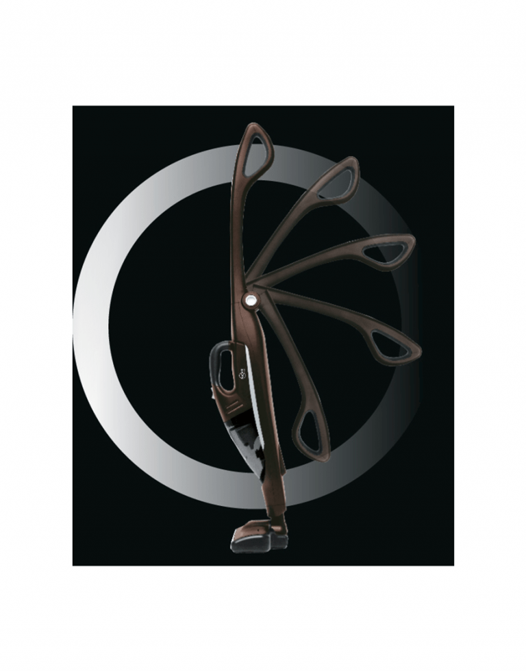 این جارو شارژی با رنگ قهوهای و طراحی ارگونومیک، بهراحتی در فضاهای کوچک جای میگیرد. وزن ۳ کیلوگرمی آن امکان جابهجایی آسان را فراهم میکند. دسته تاشو و قابلیت ایستادن بدون نیاز به پایه، از دیگر ویژگیهای طراحی این مدل هستند.