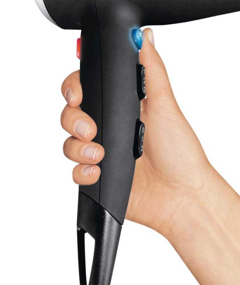توان مصرفی (وات) ۲۰۰۰ تعداد سرعت ۳ تعداد دما ۲ طول سیم (متر) ۳ وزن (کیلوگرم) – تعداد و نوع سریها ۲ (محدود کننده/ دسپنسر/متمرکز کننده) جنس بدنه پلاستیک نوع المنت – موتور AC دارد چرخش ۳۶۰ درجه دارد حلقه آویز دارد دسته تاشو – کیف حمل – سیم مقاوم در برابر گرمای زیاد – کلید سرد کن فوری دارد فیلتر پشتی دارد فیلتر قابل تعویض – یونیزاسیون دارد دیسپنسر دارد ابعاد سایر ویژگی ها *هنگامیکه یونساز فعال است، یونهای منفی الکتریسیتهی ساکن روی مو را خنثی میکنند و وزشدگی موها کمتر میشود * بدنهی ضدلغزش |