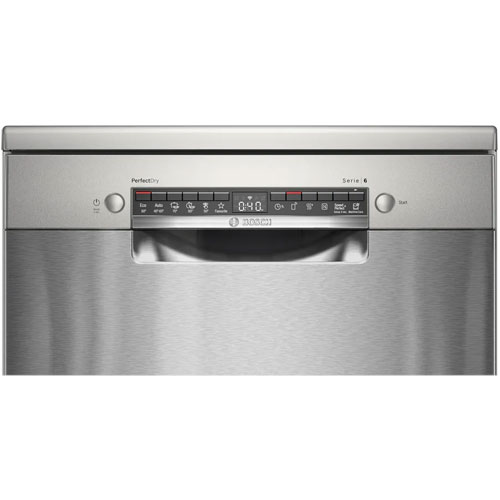 ماشین ظرفشویی بوش مدل BOSCH SMS6ZCI15E دارای ظرفیتی ۱۴ نفره و تعداد ۳ طبقه است. شما می توانید گزینه های انتخابی زیادی را برای چیدن و یا شستن انواعی از ظرف ها داشته باشید. طبقه ها با ویژگی اسانسوری که دارند هر نوع و هر اندازه ظرف را در خود جای می دهند. رنگ این ماشین ظرفشویی نقره ای می باشد که بر روی آن برچسب زرد رنگی وجود دارد. این برچسب کنده شده و رنگ استیل و خوش نقش آن نمایان می شود. پنل ماشین ظرفشویی بوش سری ۶ آلمان دکمه ای است و کشیده می باشد. در قسمت طرفین پنل دکمه های شروع و مکث قرار گرفته است. تمام قسمت داخلی و یا مخزن آن از استیل است و لکه به خود نمی گیرد. تنها آب سری به ماشین ظرفشویی وصل می شود و برای گرم کردن اب از هیتر استفاده می کند. برنامه های کاربردی دارد که شستشوی نیمه ظرفیت و یا شستشو اقتصادی در میان آن ها قرار گرفته است. خرید ماشین ظرفشویی بوش آلمان سری ۶ به صورتی پیشنهاد می شود چرا که یکی از کاربردی ترین دستگاه ها و یا محصولات شرکت بوش است.