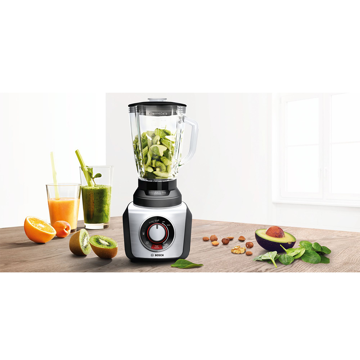 مخلوط کن بوش مدل BOSCH SilentMixx Pro MMB66G3M با توان ۹۰۰ وات جز ء مخلوط کن های حرفه ای شرکت بوش میباشد که با طراحی زیبا و ترکیب رنگ نقره ای و مشکی ، جلوه زیبایی به آشپزخانه شما میبخشد. مخلوط کن MMB66G3M دارای سیستم کاهش دهنده صدا بوده و جزء کم صدا ترین مخلوط کن های دنیاست.