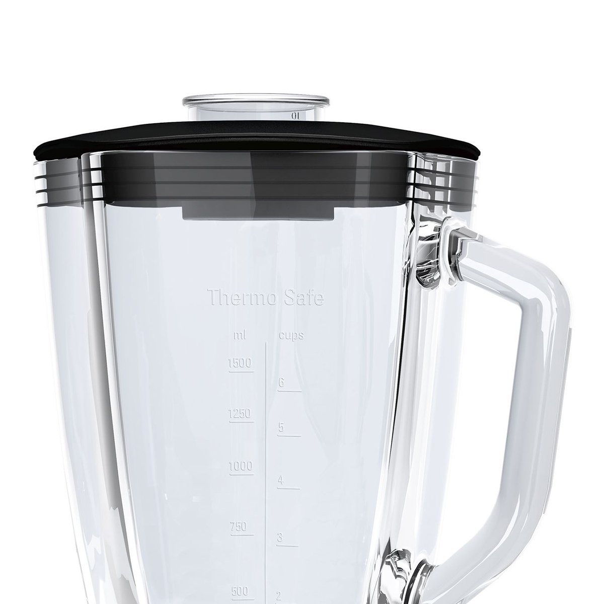 تیغه های این مخلوط کن از جنس استیل ضد زنگ میباشد که موجب مخلوط نمودن انواع اسموتی ، نوشیدنی و … در مدت زمان محدودی میشود. پارچ شیشه ای مخلوط کن بوش از جنس شیشه مقاوم در برابر حرارت بوده و میتوان سوپ های گرم و یا اسموتی های سرد را درون آن مخلوط نمود . ظرفیت پارچ این دستگاه ۲.۳ لیتر بوده و حجم زیادی از نوشیدنی و … را درون خود جای میدهد.