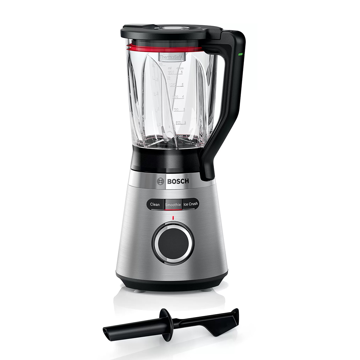 مخلوط کن بوش مدل MMB6382M دارای یک پارچ با جنس شیشه ای می باشد که این پارچ کاملا مقاوم و ضد ضربه است و در برابر انواع ضربه ها و فشارها دچار آسیب و شکستگی نمی شود. ظرفیت این پارچ برابر با یک و نیم لیتر است که میزان بسیار بالا و قابل توجهی است. این مخلوط کن توسط برند بوش تولید شده است و کارکردی بسیار سریع و مناسب از خود ارائه می دهد. به طوری که سرعت گردش موتور آن در هر دقیقه برابر با سی هزار دور است و توان مصرفی آن نیز ۱۲۰۰ وات می باشد. تمام این عوامل نشان دهنده ی کیفیت بالا و کاربرد مناسب این دستگاه می باشند.