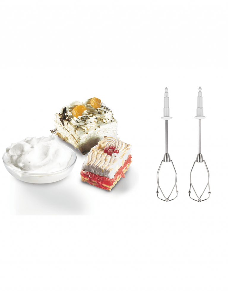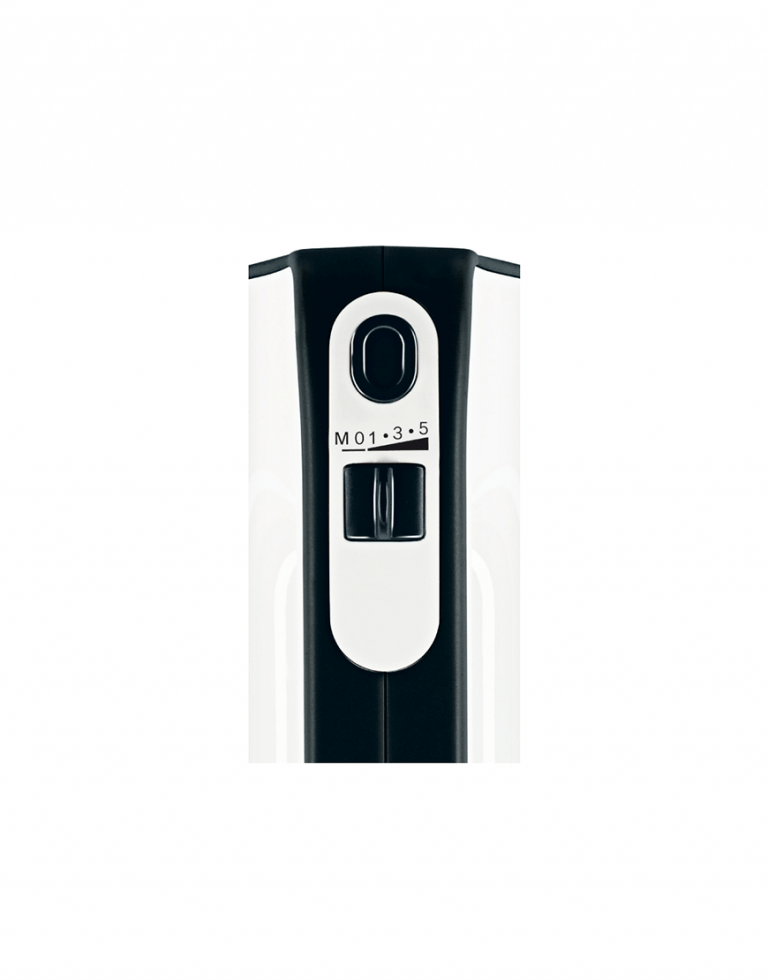 برخی از ویژگیهای این مدل به شرح زیر است: بسیار بیصدا، سبک و مناسب برای کار کردن طراحی زیبا با رنگهای خاص سفید و مشکی قدرت بالای ۴۵۰ وات برای بدست آوردن بهیترین عملکرد دو همزن از جنس استیل ضدزنگ با فناوری جدید FineCreamer برای بدست آوردن مخلوطی همگن؛ ایده ساخت این محصول افزایش حجم بوده است. این محصول نوآورانه با گلولههای طراحی شده در پایین خود هوای بیشتری را وارد همزن کرده و باعث میشود که مخلوط بهتری حاصل شود. به طور مثال با این همزن سفیده تخم مرغ بیشتری در مدت زمان کمتر بدست میآید. انتخاب سرعت صحیح برای هر آمادهسازی هر غذایی بسیار مهم بوده و این با انتخاب قدرت درست در پنج حالت مختلف سرعت بدست میآید. با دکمه pulse / turbo حداکثر قدرت قابل استفاده خواهد بود. در زمانی که سرعت یا مقدار کمتر مورد توجه باشد مانند بریدن نان، ژامبون یا سوسیس به راحتی با فشردن این دکمه این امکان برای شما فراهم است. قطعات قابل جدا شدن برای شستشوی بهتر |
