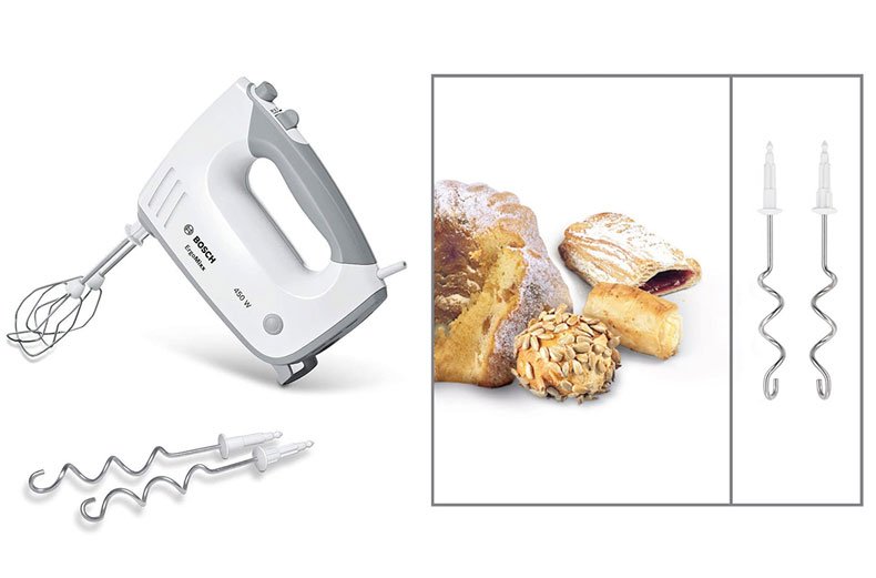 وجود ۲ سری همزن و ۲ سری خمیرزن از جنس استیل ضد زنگ و باکیفیت برای کار مخلوط کردن و ورز دادن راحتی و سرعت را به ارمغان می آورند. با این همزن ها به راحتی می توان خامه یا سفیده تخم مرغ را هم زد و مخلوط های هوادار تهیه کرد. میله های خمیرزن نیز برای ورز دادن مواد سنگین کیک و نان خانگی مناسب هستند.