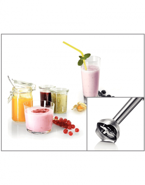 کاربردها غذاساز، همزن، خرد کن، یخ شکن توان مصرفی(وات) ۸۰۰ تعداد سرعت ۱۲ وزن (kg) – طول سیم(متر) – جنس بدنه استیل جنس میله گوشتکوببرقی استیل ظرفیت لیوان مدرج (ml) ۸۰۰ همزن دارد جنس میله همزن استیل خردکن دارد غذاساز دارد جنس کاسه غذاساز پلاستیک تعداد تیغهها ۴ تیغه جنس تیغهها استیل تیغه یخ شکن دارد پوره ساز – عملکرد توربو (TURBO) دارد کم صدا با لرزش کم دارد نشانگر LED برای نمایش سرعت – طراحی ارگونومیک دارد قابلیت کار کردن بدون سیم – قفل ایمنی – قابلیت شستشوی قطعات در ظرفشویی دارد ابعاد (cm) – سایر ویژگیها * Anti Splash |
