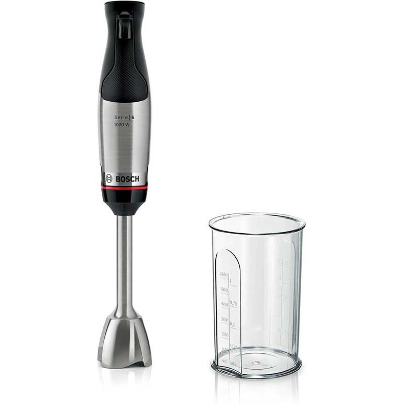 بدنه گوشت کوب برقی بوش مدل BOSCH MSM6M610 از جنس استیل و پلاستیک بسیار با کیفیت در رنگ مشکی و استیل ساخته شده است و شما می توانید با خیال راحت از آن استفاده کنید. به علاوه دسته این محصول کاملاً ارگونومیک بوده و دست شما را در هنگام استفاده خسته نخواهد کرد. به همراه گوشت کوب برقی مدل MSM6M610 یک لیوان مدرج با ظرفیت ۶۰۰ میلی لیتر برای شما ارسال خواهد شد که بدنه آن نیز از جنس پلاستیک ساخته شده است و شما می توانید ترکیب های مختلفی را در آن تهیه کنید.