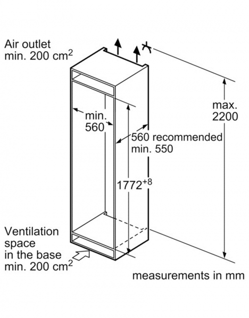 مشخصات عمومی یخچال فریزر توکار بوش مدل KIV38X22GB
